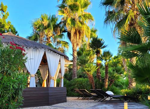 The tropical garden offers many intimate and quiet corners, as well as a spacious terrace and lounge chairs by the pool.